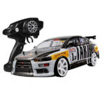 A really fast and manageable car, and all-wheel drive. Included are plastic tires for drift and rubber tires for racing